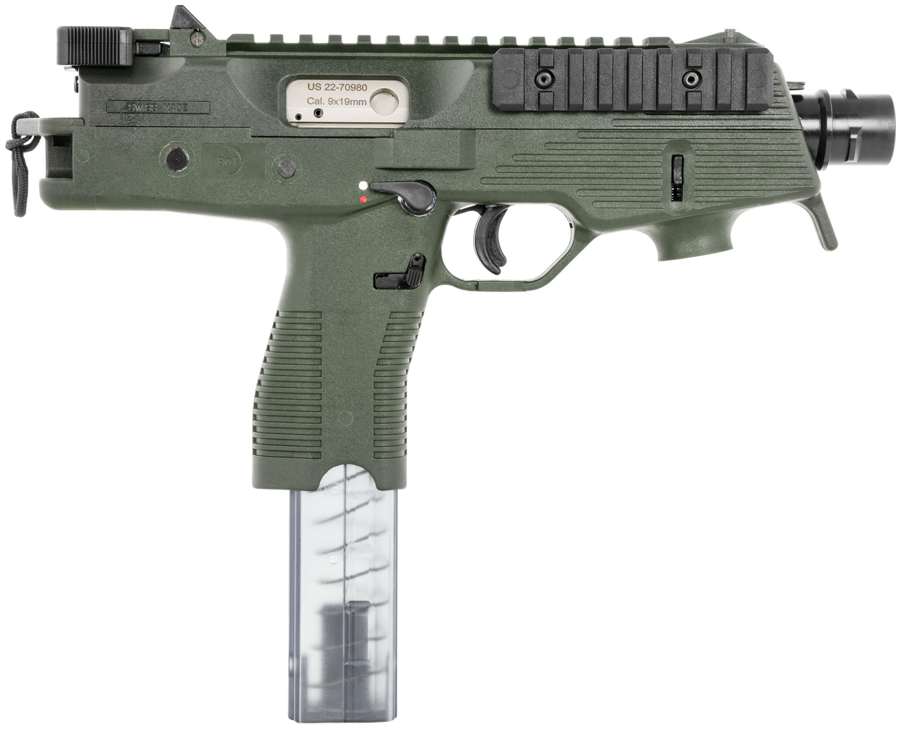 The B&T TP9 is a high-performance 9mm submachine gun designed for precision, reliability, and compact maneuverability. Featuring a 5.1-inch barrel, this Swiss-engineered firearm delivers exceptional accuracy in close-quarters engagements while maintaining a lightweight profile. The Olive Drab Green (ODG) polymer construction ensures durability and corrosion resistance, making it ideal for tactical operations and professional use.