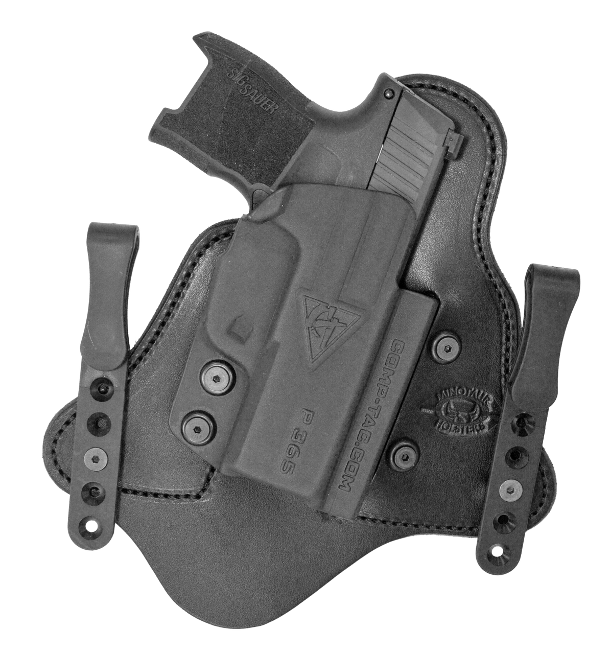 The MTAC is an inside the waistband (IWB) Kydex and leather hybrid holster designed for concealed carry. Created to be worn behind the hip at 4:00 or 5:00, this holster offers the best in comfort and speed for concealed carry use. It features a 2 Layer top grain leather cowhide backing, kydex body, interchangeable body, flexible polymer clips, ride hide adjustable, and cant adjustable.
