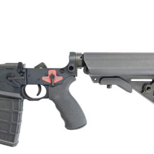 The magazine well is also enlarged and beveled to facilitate quicker magazine changes. The integral trigger guard is over-sized to allow room for larger hands or gloves. The front of the magazine well is also textured to allow it to be used as a grip for forward support. These Built Lower Receivers come with a carbine length, 6-position collapsible stock buffer tube without any stock installed. This allows the customer to install whatever stock they prefer without paying for a generic one that they may likely remove anyway.…