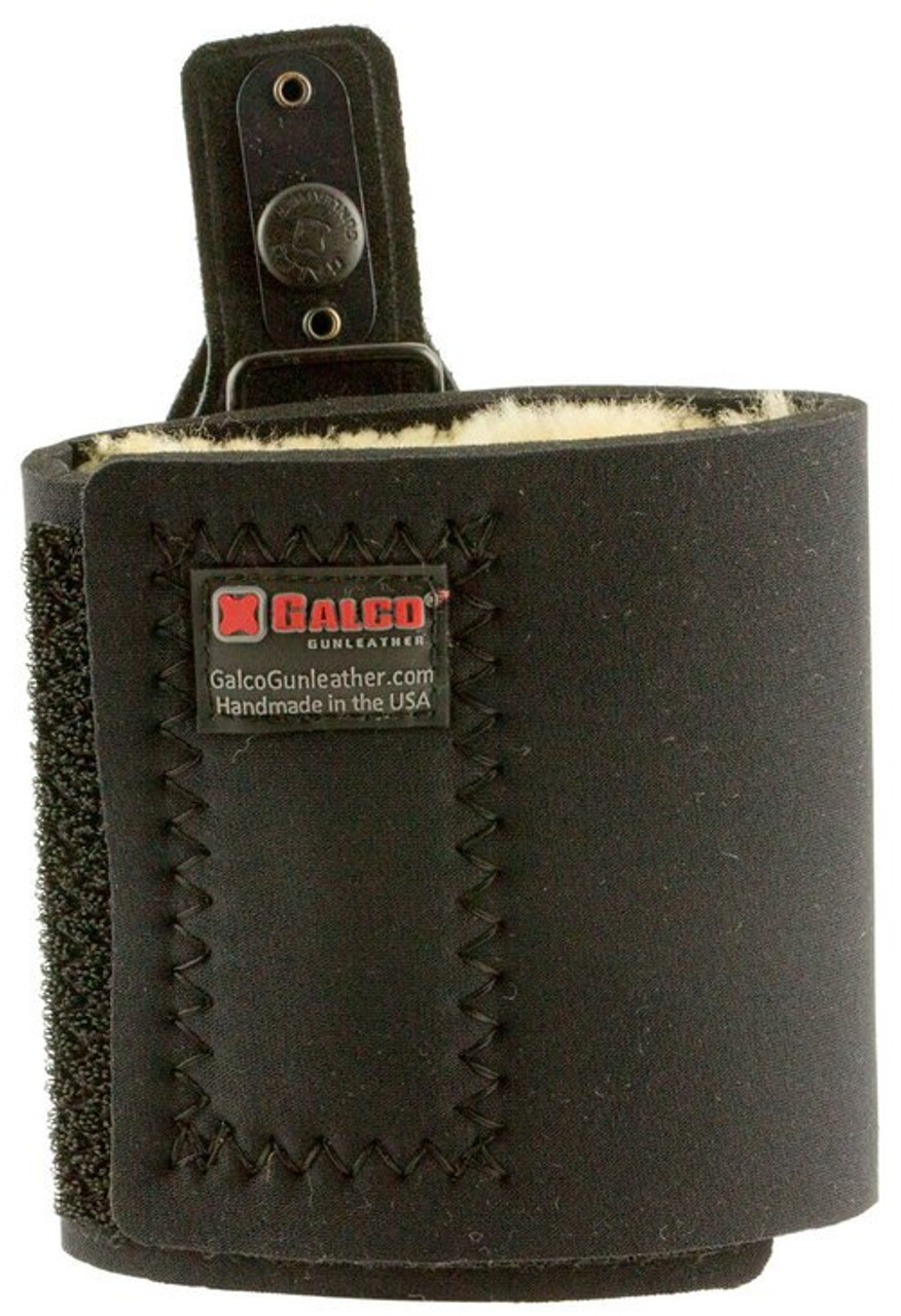 Galco’s Ankle Lite uses the same wide neoprene ankle band and Velcro closure as the Ankle Glove with Center Cut Steerhide for the holster. This holster combines extended wearing comfort with unmatched security. Additional comfort is provided by sheepskin padding between the holster and ankle, while speed of draw is enhanced with a reinforced thumb break retention strap. The Ankle Lite accommodates ankles up to 13″ in circumference.
