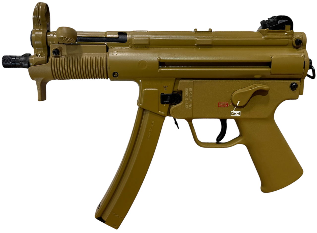The HK SP5K-PDW 9mm is a high-performance, compact pistol designed for superior control and reliability. Featuring a 5.83″ threaded barrel, this PDW (Personal Defense Weapon) is optimized for suppressed firing while maintaining exceptional accuracy. The Flat Dark Earth (FDE) finish provides a sleek, tactical look, while the durable steel frame ensures long-lasting durability in demanding conditions.