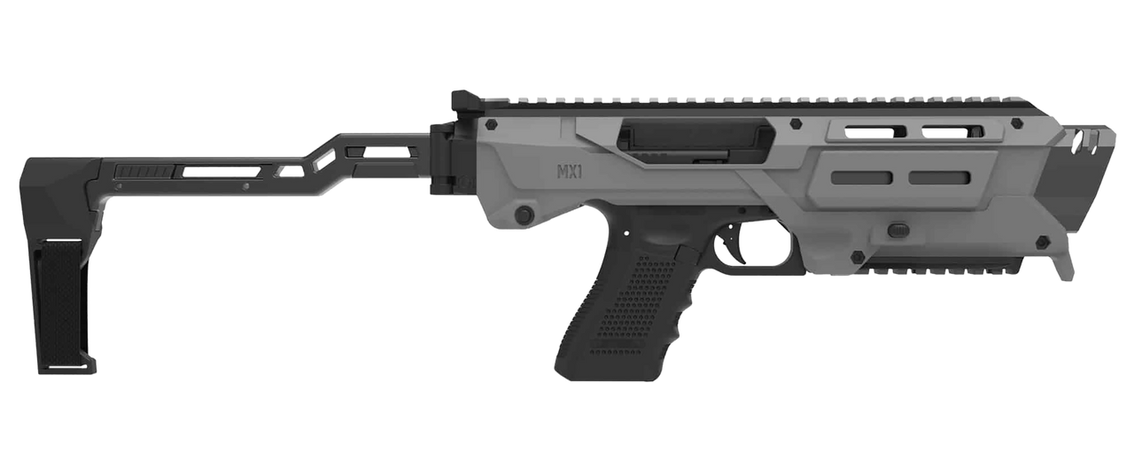 Upgrade your Glock into a carbine-style platform with the Meta MX1 Conversion Kit – available in Tan, Gray, and White. Folding stock, M-LOK, Picatinny rail, and ambidextrous controls.