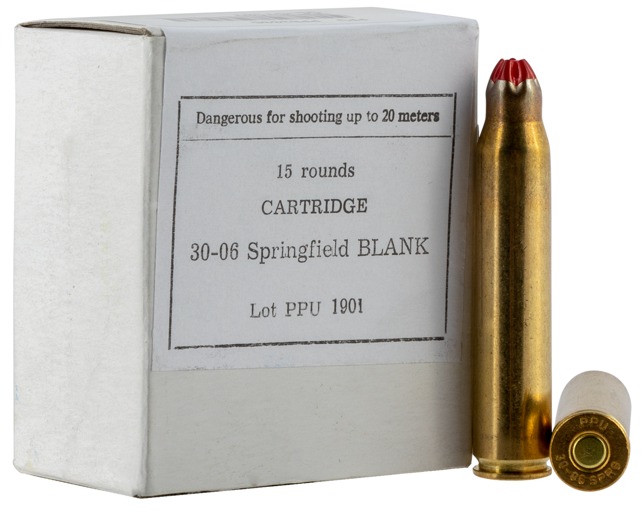 This standard pack of 30-06 Springfield blanks comes packaged 15 rounds per box, 54 boxes per case.