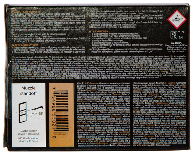 This Sellier and Bellot Breaching load is ideal for home defense use. It has a 1575 muzzle velocity and comes packaged 10 rounds per box, 25 boxes per case.