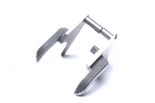 Wilson Combat Ambidextrous Thumb Safety Stainless, Allows use of thumb safety whether shooting with right or left hand. Constructed of high quality steel, heat treated. Extended, wide serrated levers on each side. Gunsmith fitting is recommended. Polished finish.